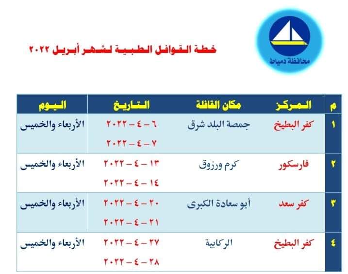 وأوضحت وزارة الصحة والسكان أن القوافل ستكون بمحافظات ( الجيزة - سوهاج- أسيوط - الأسكندرية - القليوبية )