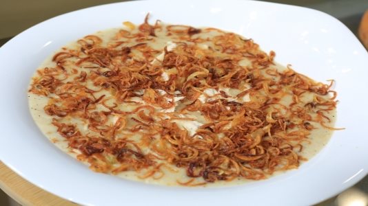 - نقوم بغرف الكشك في أطباق التقديم ونزينه بالبصل المحمر .