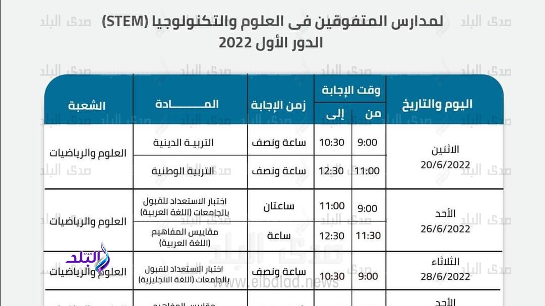 وتعقد امتحانات ابناؤنا في الخارج لجميع الصفوف الدراسية (صفوف النقل / امتحان شهادة اتمام بمرحلة التعليم الأساسي) الكترونياً من خلال المنصة الخاصة بالوزارة (اسئلة اختيار من متعدد)، طبقاً للمواعيد المقررة بالجدول المُعلن الذى يبدأ يوم السبت الموافق 7 مايو 2022