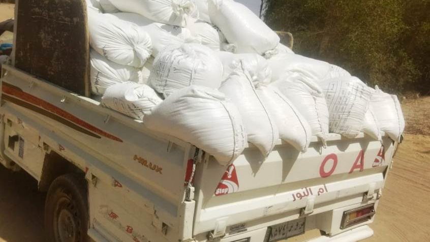 وتفقد رئيس المدينة القافلة التي تحتوي على 2000 كرتونة مواد غذائية تشمل كل كرتونة "2 علبة فول ـ علبة صلصلة، كيلو بلح، 2 كيس زبيب، 3 كيلو أرز ، كيلو مكرونة ، 2 كيلو سكر، زجاجة زيت ، كيلو فاصوليا".