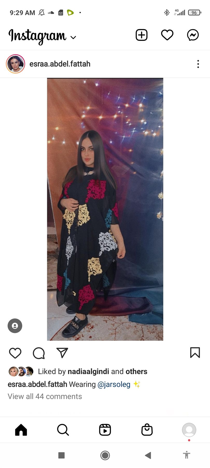 وظهرت إسراء عبد الفتاح في الصورة بإطلالة محتشمة، مرتدية جلباب باللون الأسود، واعتمدت ترك شعرها منسدلا علي الأكتاف، مما نال اعجاب متابعيها.