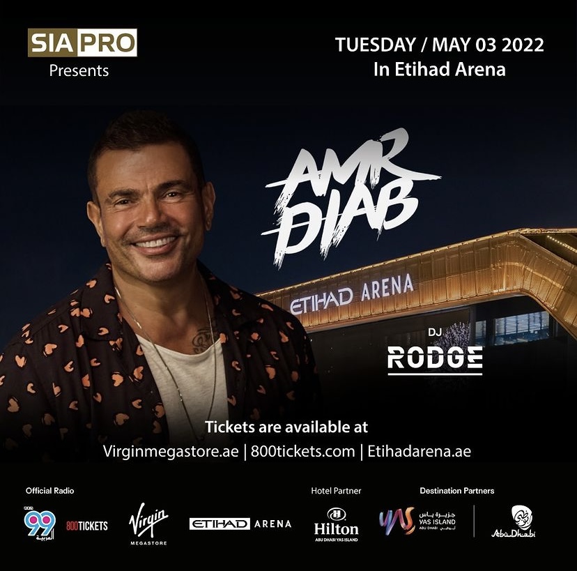 يحيي الهضبة عمرو دياب حفلا بمناسبة عيد الفطر 2022 ، وذلك يوم الثلاثاء في 3 مايو 2022 على مسرح الاتحاد أرينا في أبو ظبي.
