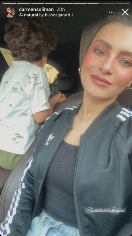 وظهرت كارمن سليمان بإطلالة جذابة من سيارتها، مرتدية جاكيت باللون الأسود و بنطلون جينز ، مما حازت على إعجاب متابعيها .