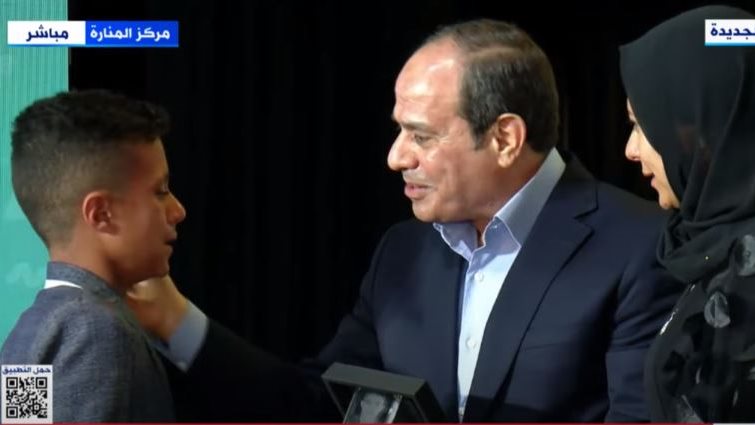 وكرم الرئيس السيسي أهالي وأسر شهداء الجيش والشرطة والأطقم الطبية، وذلك في إطار احتفالية عيد الفطر مع أبناء الشهداء.