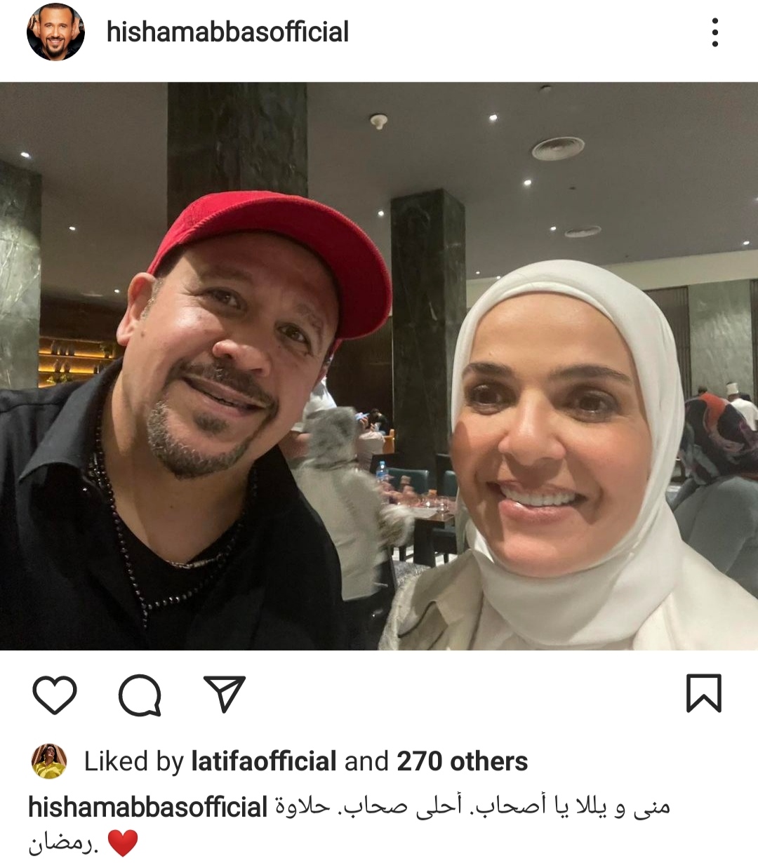 وظهر هشام عباس في الصورة برفقة الإعلامية مني عبد الغني، مما نال اعجاب متابعيه.