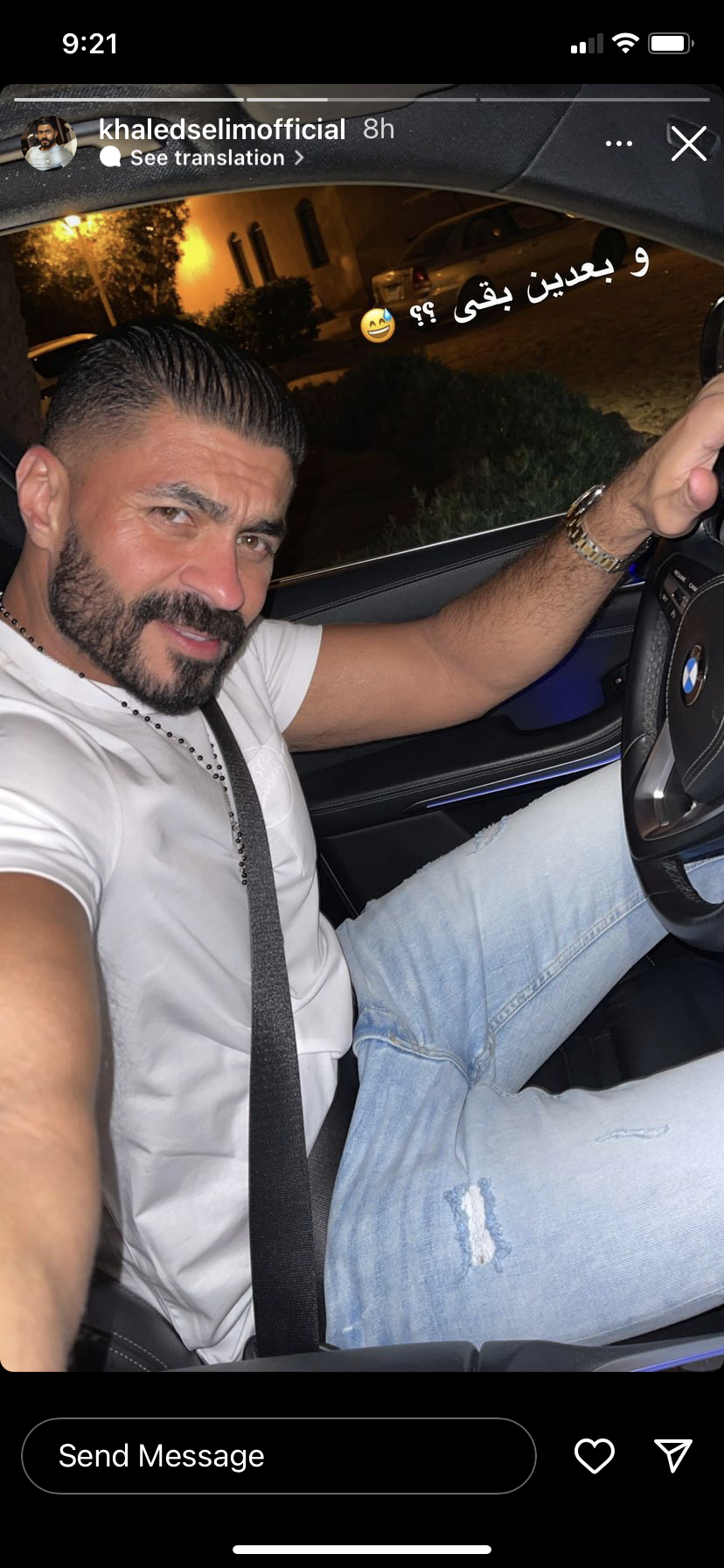 وظهر خالد سليم، في الصورة من سيارته وعلق قائلا: "وبعدين بقي".