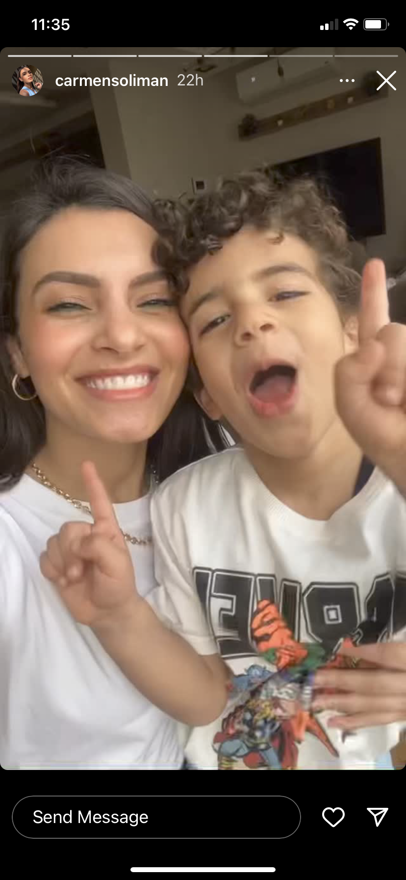 وظهرت كارمن سليمان ، بصورة سيلفي مع ابنها، وهو ما اثار اعجاب متابعيها .