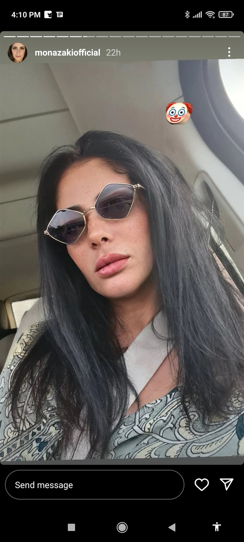 وظهرت مني زكي في الصورة من سيارتها، بدون مكياج مما نال اعجاب متابعيها.