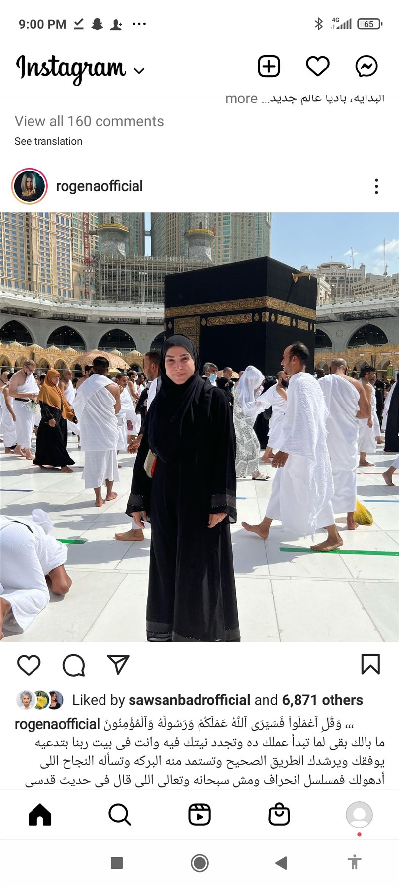 وظهرت روجينا في الصورة بالحجاب من الحرم المكي، مما نال إعجاب متابعيها.