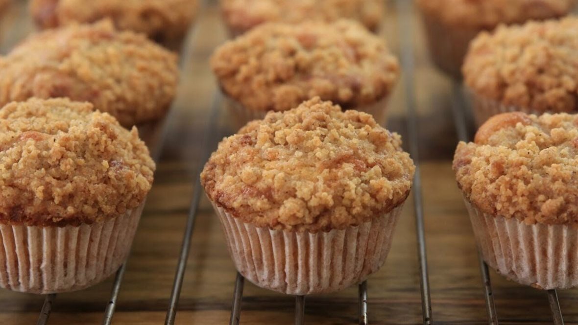 3-اخلطيهم جيدًا لتشكيل خليط ناعم وتدهن قوالب المافن بقليل من الزيت ويضاف الخليط بالتساوي إلى القوالب ويعلوها جوز البقان المحمص والمفروم.