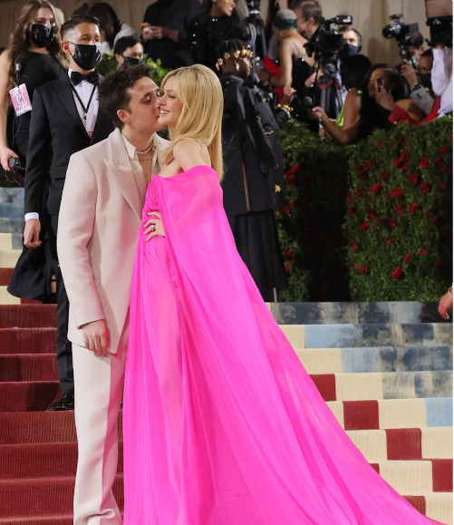 وقال بروكلين عن ملابسه: "عادة ما أرتدي بدلة سوداء بسيطة. لكن هذه المرة أرتدي قميصًا شفافًا وبدلة بيضاء، وقالت نيكولا عن ملابسها: “يشرفني للغاية. في كل مرة أرتدي فيها أحد فساتينه ، أشعر بسعادة غامرة. تشعر وكأنك أميرة فيها”.