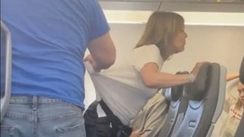 وفي إحدى محاولات فصلهم من الشجار العنيف، تقف امرأة بين الركاب المتشاجرين وتقول لهم: «هذا يكفي!!»، كما يصرخ مسافر آخر: «تصرفوا لفضهم! اللعنة على هذه الطائرة».