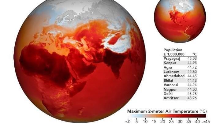 وبالقرب من العراق وتحديدا في الهند، شهدت أعلى درجات الحرارة من 122 عاما، ونشرت هيئة الأرصاد الجوية، صورا ترصد ارتفاع درجات الحرارة مع بداية الموسم الصيفي إلى مستوى عال، مشيرة إلى أن صور الأقمار الصناعية تفيد بأن درجات الحرارة في الهند جنونية في بداية الموسم، وسجلت جميع المناطق درجات حرارة تجاوزت 42 درجة، ودرجة حرارة سطح الأرض 62 درجة مئوية، ولم تشهد الهند هذه الدرجات منذ 122 عاما.