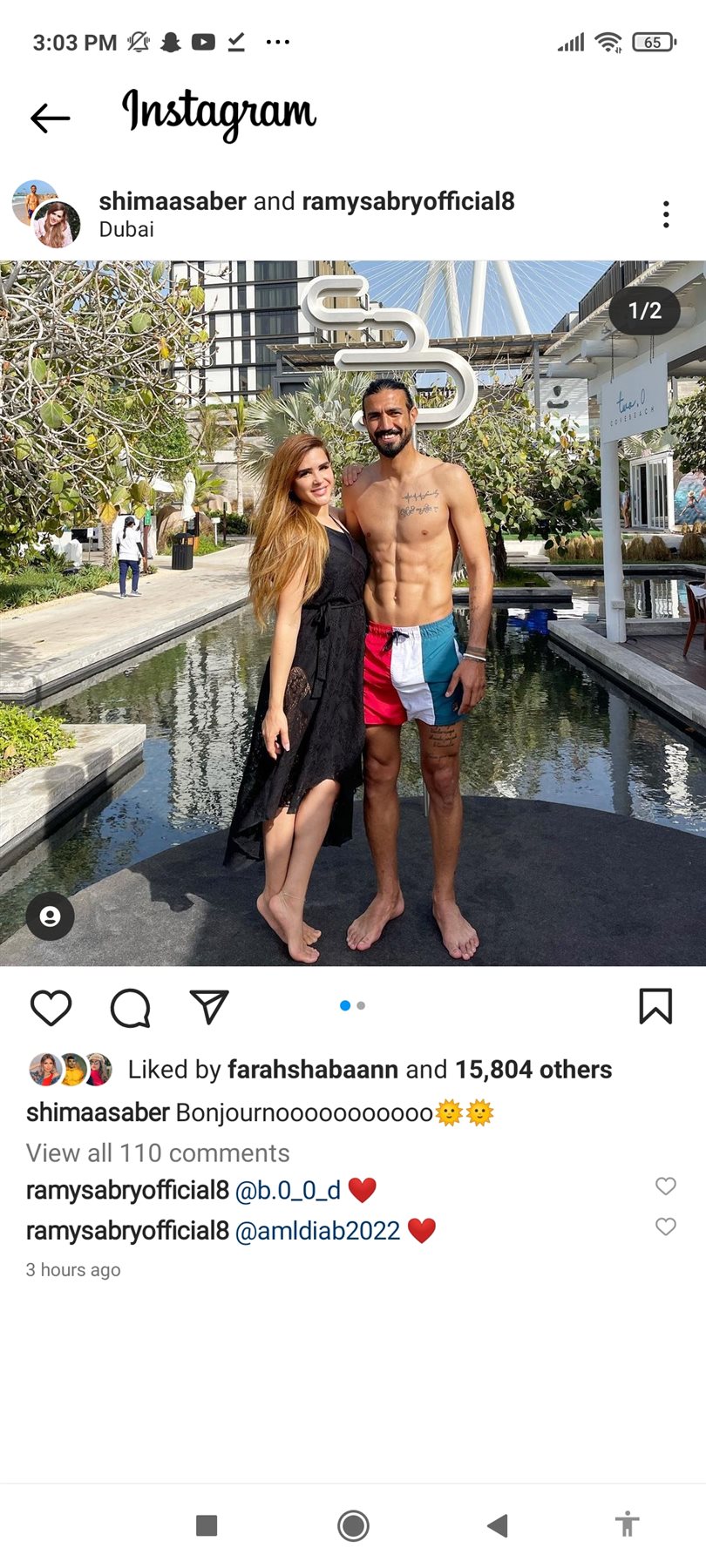 نشرت الإعلامية شيما صابر، عدة صور برفقة زوجها اللاعب رامي صبري، عبر صفحتها الرسمية على موقع التواصل الاجتماعي للصور والفيديوهات انستجرام.