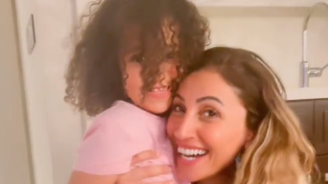 و ظهرت دينا الشربيني وهي تغازل ابنة محمد رمضان علي أنغام أغنيته حبيبي يا حبيبي، وعلق محمد رمضان علي الفيديو قائلا : بنتي مع أختي .