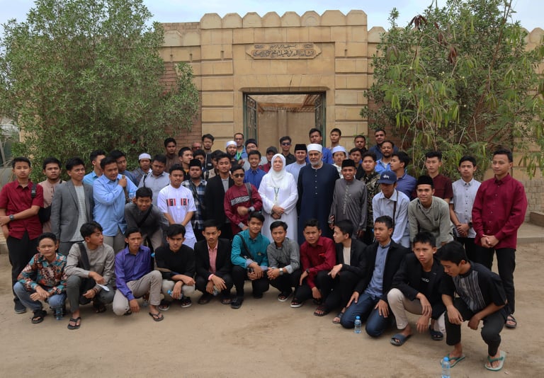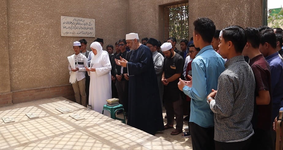 وقام الوفد الإندونيسي بقراءة الفاتحة وترديد دعوات للشيخ الراحل محمود خليل الحصري وهذا محبة لصاحب المصحف المعلم.