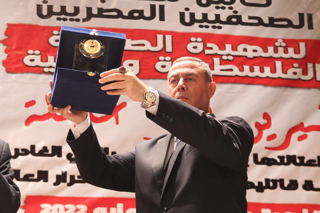 أهدى مجدي سخي، درع نقابة المحامين يحمل إسم الصفحية الشهيدة شيرين أبوعاقلة، إلى نقابة الصحفيين وسفير دولة فلسطين بالقاهرة.