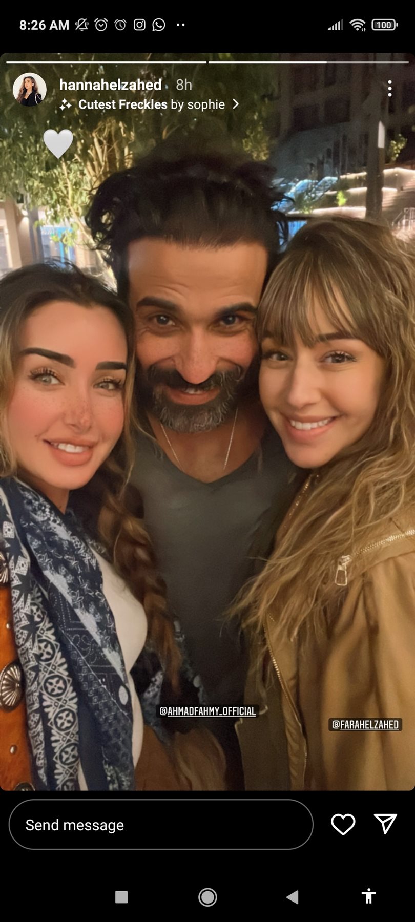 وظهرت هنا الزاهد بإطلالة جذابة أنيقة برفقة زوجها أحمد فهمي وشقيقتها، مما حاز اعجاب متابعيها .