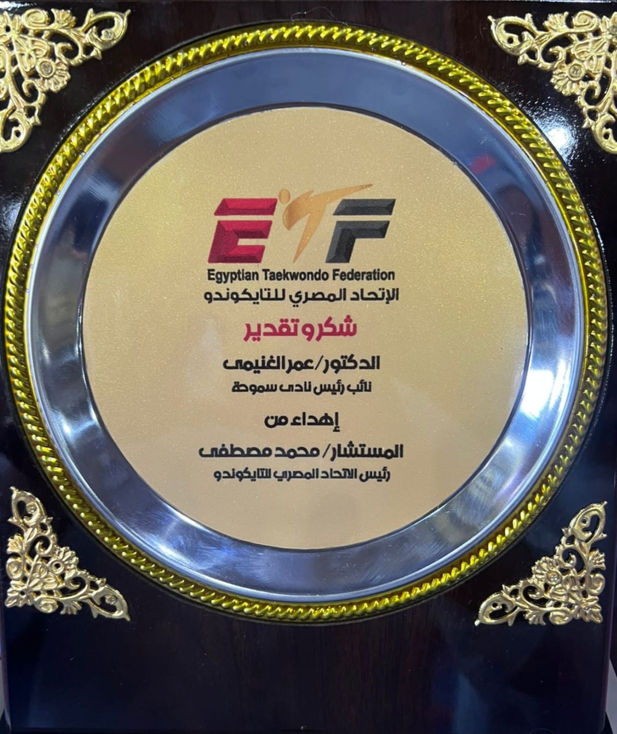 أهدي الاتحاد المصري للتايكوندو درع الاتحاد لنائب رئيس نادي سموحة عمر الغنيمي.