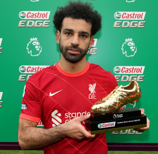 تُوج محمد صلاح جناح فريق ليفربول بجائزة هداف الدوري الإنجليزي “ الحذاء الذهبي” هذا الموسم.