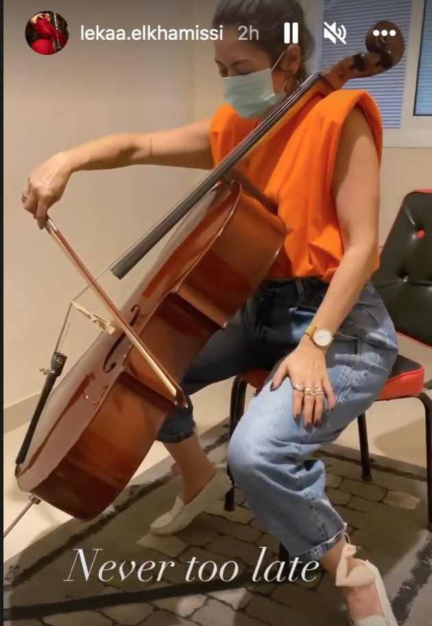 ظهرت لقاء الخميسي وهي تتعلم العزف علي آله الكونترباص ، مما حازت علي اعجاب متابعيها .