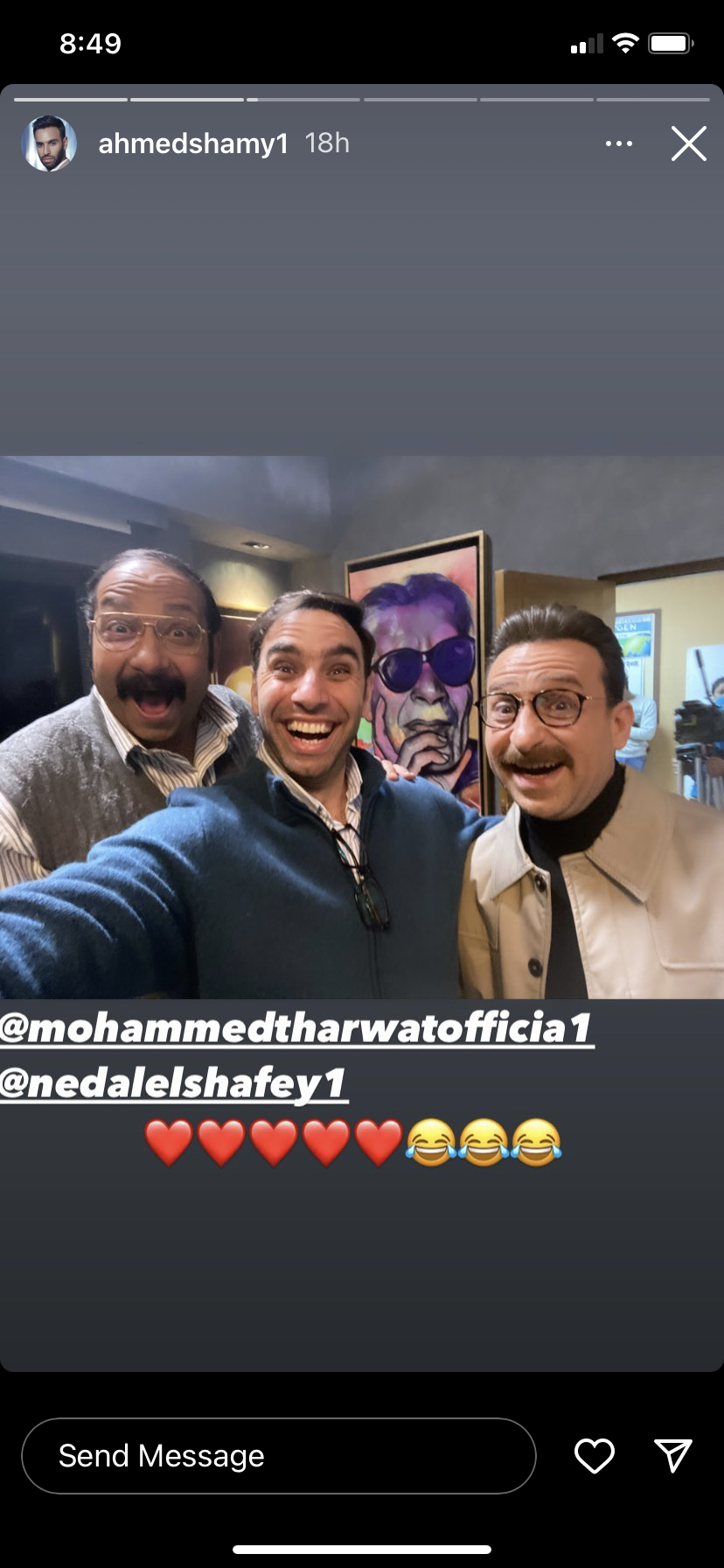 و ظهر أحمد الشامي في الصورة و هو يستعيد كواليس مسلسل دايما عامر مع نضال الشافعي و محمد ثروت مما اثار اعجاب متابعيه .