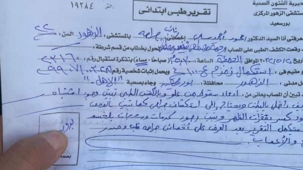 وكان الطفل وليد السيد محمد خليل محمد 5سنوات وصل إلى مستشفي زهور بورسعيد التابع لمنظومة التأمين الصحى الشامل بادعاء سقوطه من الدور الثالث بمساكن عمر بن عبد العزيز ع94 ش18 .