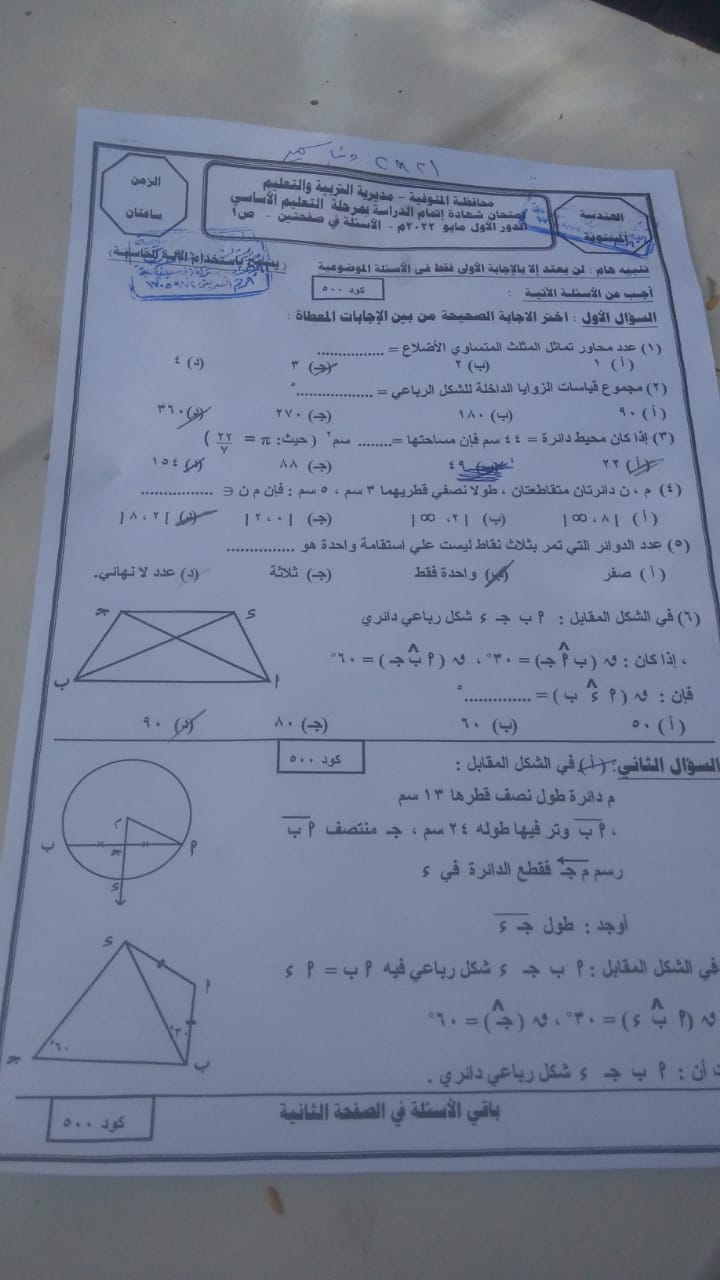 أدي اليوم طلاب الشهادة الإعدادية بمحافظة المنوفية امتحان مادة الهندسة في اخر أيام امتحانات الفصل الدراسي الثاني.