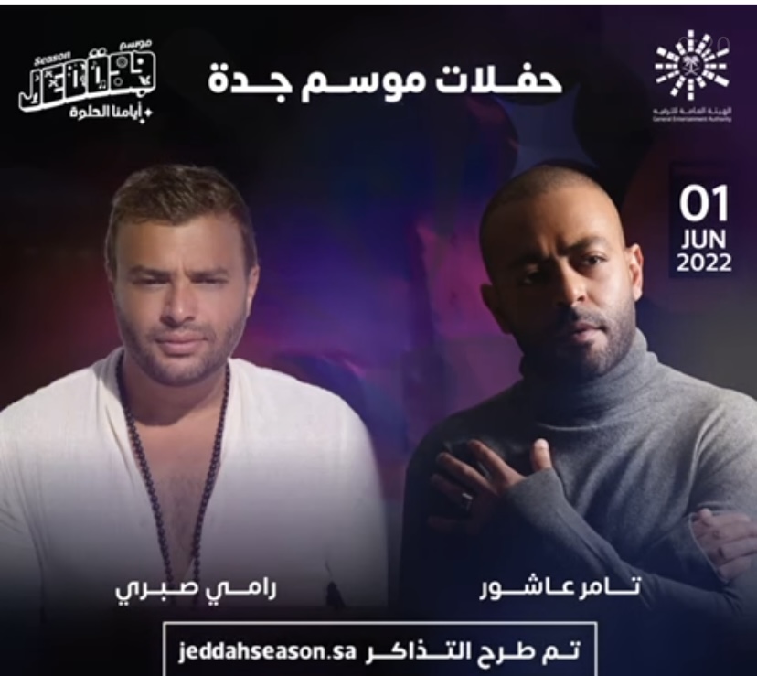 يستعد الفنان تامر عاشور و الفنان رامي صبري لإحياء حفل غنائي جماهيري في موسم جدة غدا على مسرح ليالينا .