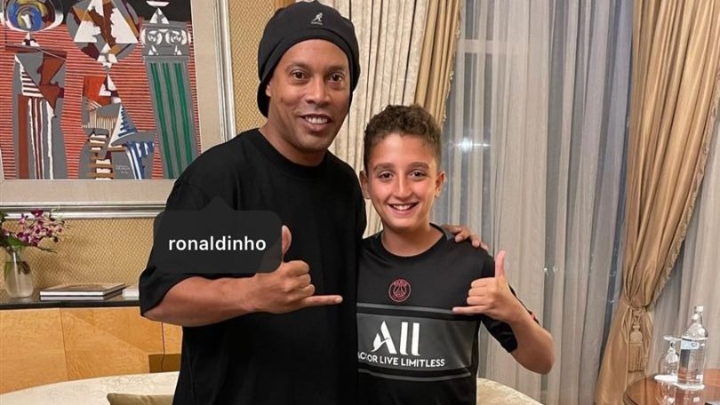 وظهر في الصورة نجم كرة القدم البرازيلية رونالدينيو برفقة ابن أمير كرارة، وعلق قائلا"نورت بيت اخوك يا ساحر".