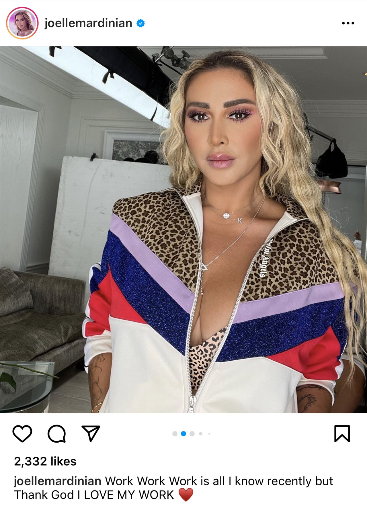 وعلقت جويل ماردينيان علي الصور كاتبة: “العمل العمل العمل، كل ما اعرفه مؤخرا، ولكن الشكر لله اني احب عملي”.