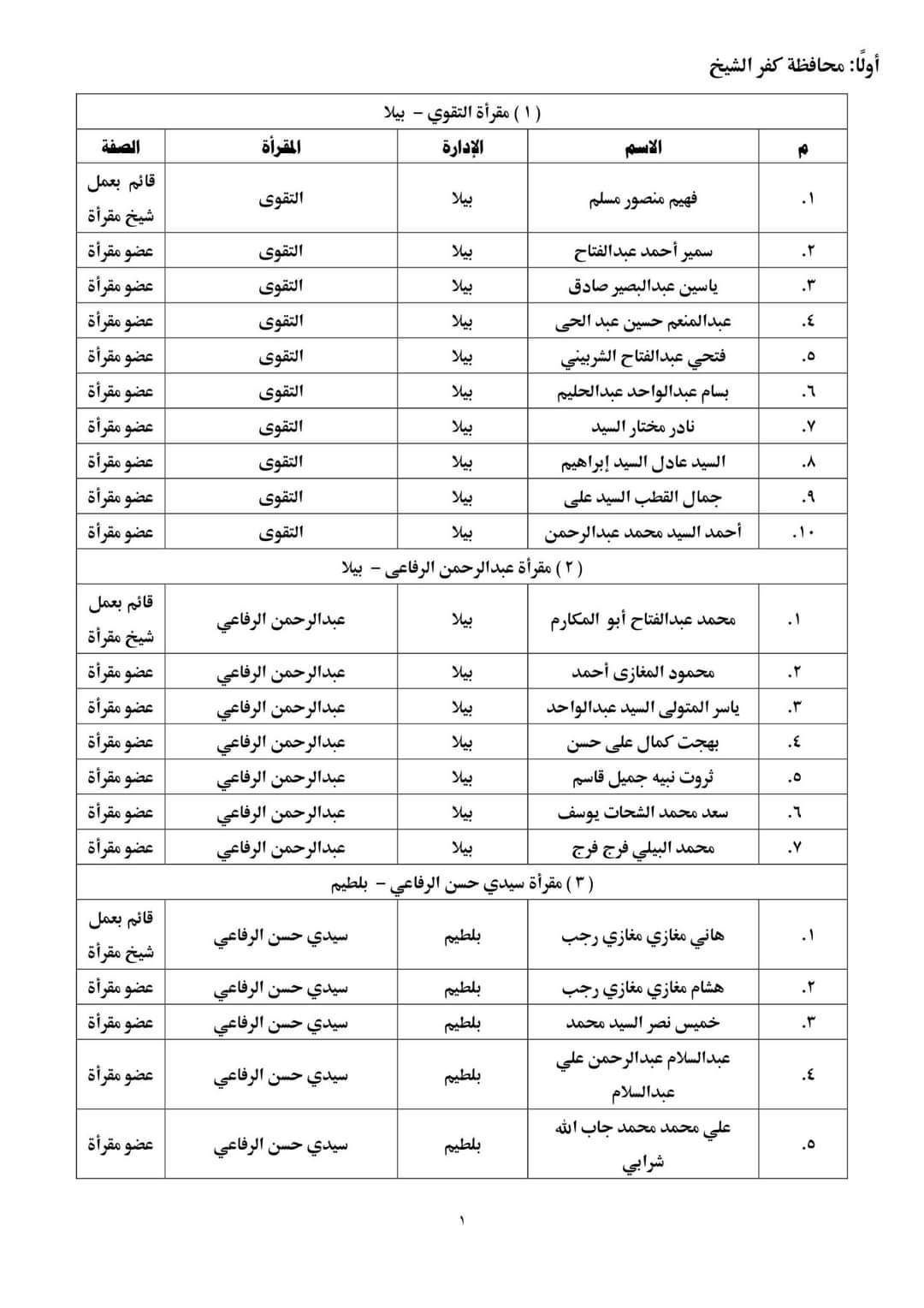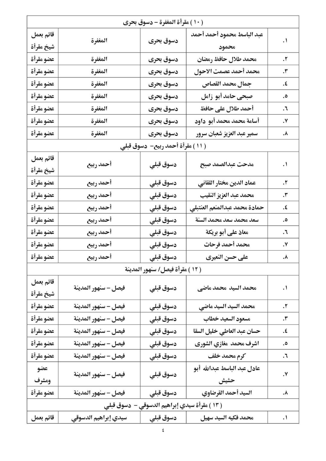 أعلنت وزارة الأوقاف في إطار دورها لخدمة القرآن الكريم وعنايتها بحفظه وتجويده وفهم معانيه، اعتماد الدكتور محمد مختار جمعة، وزير الأوقاف ( 67 ) مقرأة قرآنية جديدة للأئمة والأعضاء الرسميين بمحافظتي كفر الشيخ وأسوان، ليصل عدد المقارئ القرآنية ( 265 ) مقرأة للأئمة والأعضاء الرسميين، وتعقد المقارئ الجديدة يوم الاثنين من كل أسبوع عقب صلاة الظهر، ابتداء من الاثنين القادم، وذلك على النحو التالي: