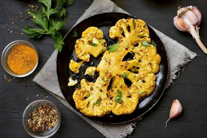 - بعد احمراره ونضجه، نخرج القرنبيط بالثوم ونضعه في طبق التقديم مباشرة.