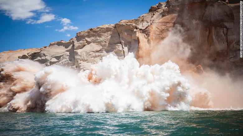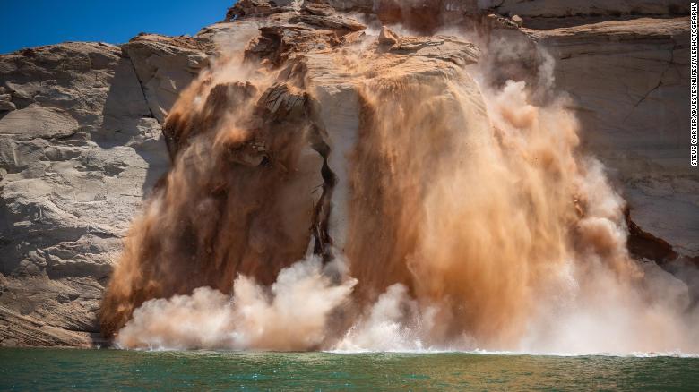 وأضافت أنه لم يصب أحد في قاربهم ، مضيفة أنه "لحسن الحظ ، لم يكن هناك أحد بالقرب منهم، ويأتي الانهيار الصخري في الوقت الذي تستمر فيه بحيرة باول في الانخفاض إلى أدنى مستوياته التي لم يكن من الممكن تصورها في السابق وسط الجفاف الضخم في الغرب بسبب تغير المناخ.
