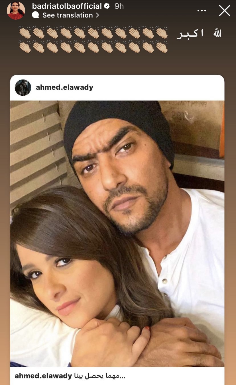 علقت الفنانة بدرية طلبة على نفى الفنان أحمد العوضي انفصاله عن زوجته الفنانة ياسمين عبد العزيز عبر حسابه بتطبيق إنستجرام.