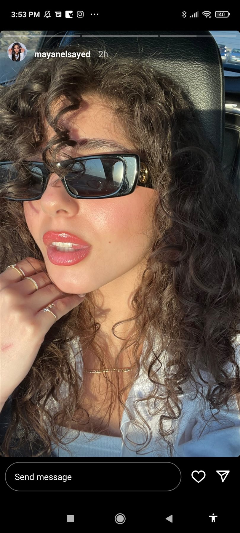 وظهرت مايان السيد في الصورة من سيارتها، بمكياج جذاب، مما نال إعجاب متابعيها.