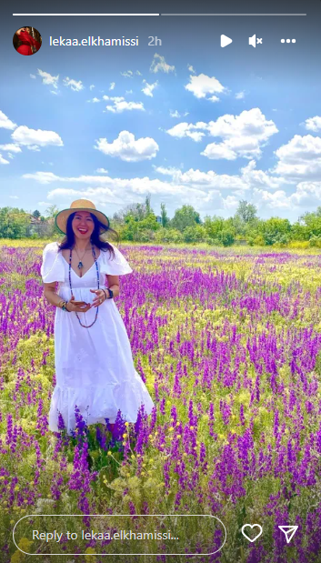 وظهرت لقاء الخميسي وسط حقول اللافندر في إطلالة صيفية، مرتدية فستان باللون الأبيض، مع قبعة وبعض الاكسسوارات المختلفة.