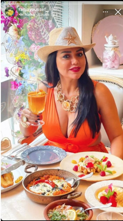 وظهرت رانيا يوسف في الصورة، باطلالة جذابة جريئة من احدي المطاعم مرتدية فستانا باللون البرتقالي مكشوف الصدر ، مما حازت علي اعجاب متابعيها .
