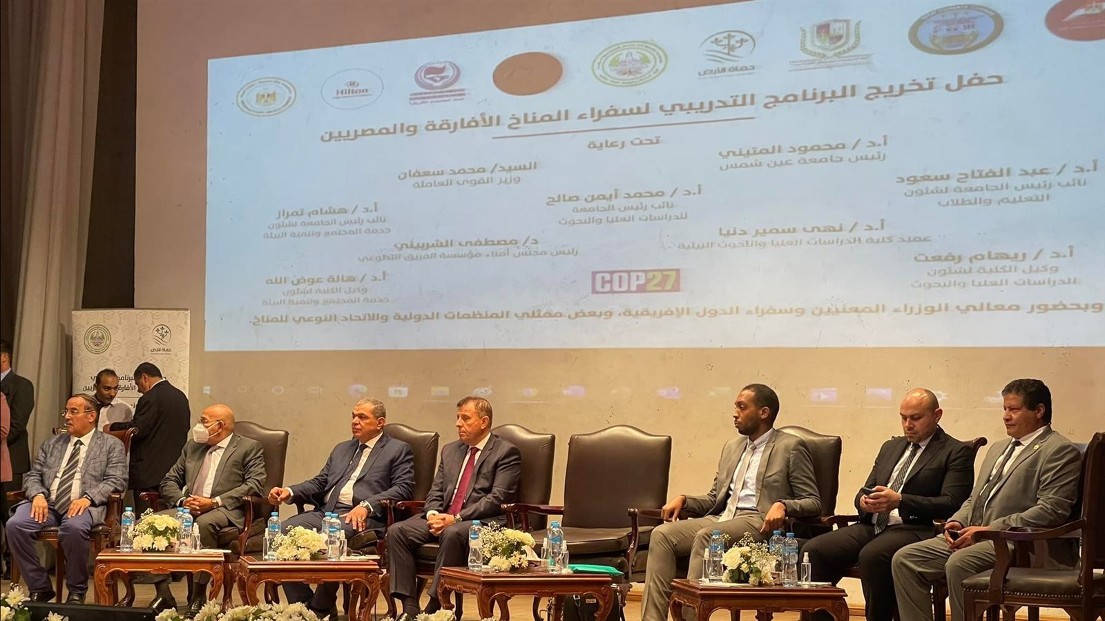 انطلق منذ قليل حفل تخريج البرنامج التدريبي لسفراء المناخ الأفارقة والمصريين، التي تقيمها اليوم كلية الدراسات العليا والبحوث البيئية بجامعة عين شمس.