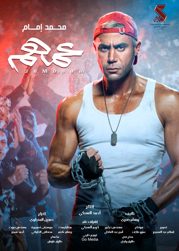 وظهر إمام، في البوستر بثوب الملاكم، وفي يديه "جنزير"، ويقف خلفه مشجعوه، وهم في حماس شديد، ويصفقون له.
