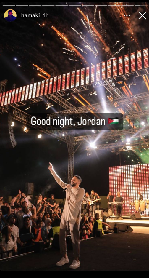 و ظهر محمد حماقي وسط جمهورة و علق قائلا : مساء الخير ، الاردن.