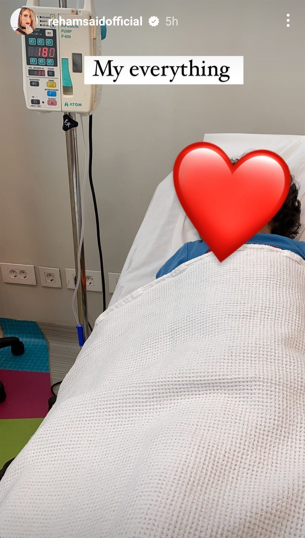 ونشرت ريهام سعيد عبر ستوري حسابها بموقع تبادل الفيديوهات والصور إنستجرام صورة لابنها داخل المستشفى، وعلقت قائلة: «كل شيء ليا، صديقي الوحيد في الحياة».