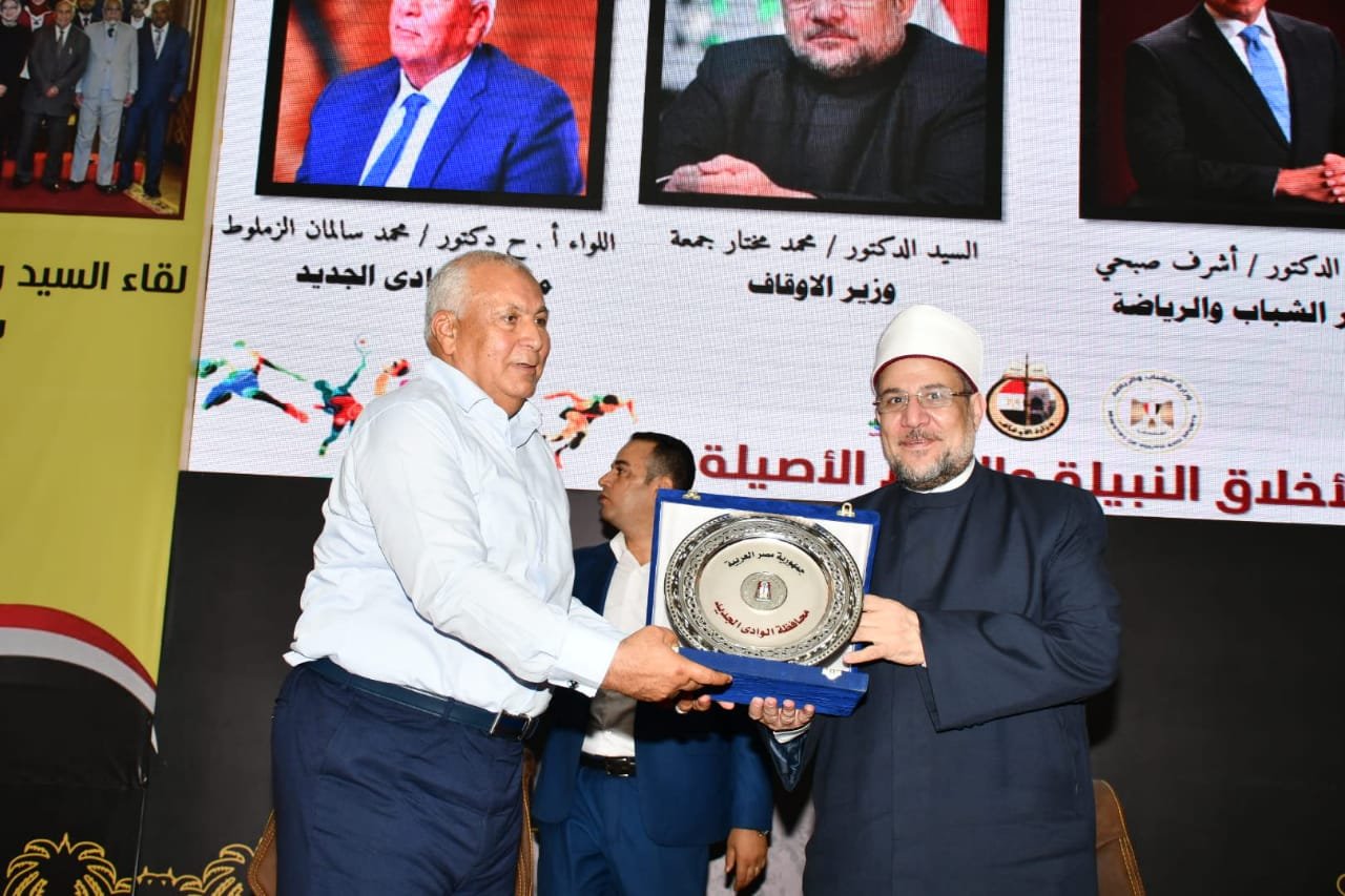 ورحب وزير الأوقاف بالحضور، معربًا عن شكره لمحافظ الوادي الجديد على جهوده الملموسة الواضحة على أرض هذه المحافظة الكريمة، وعلى الاستجابة السريعة في تنفيذ كثير من المشروعات الهامة والشراكة التامة بين وزارة الأوقاف والمحافظة في مجال عمارة المساجد ومن بينها إنشاء المجمع الإسلامي الكبير بالداخلة، والذي يُعد من أهم الصروح الإسلامية ويُعد إضافة حقيقية لعمارة المساجد في محافظة الوادي الجديد والتي كانت من أولى المحافظات السبَّاقة في مجال إنارة المساجد بالطاقة الشمسية، في إطار التحول إلى استخدام الطاقة النظيفة والمتجددة