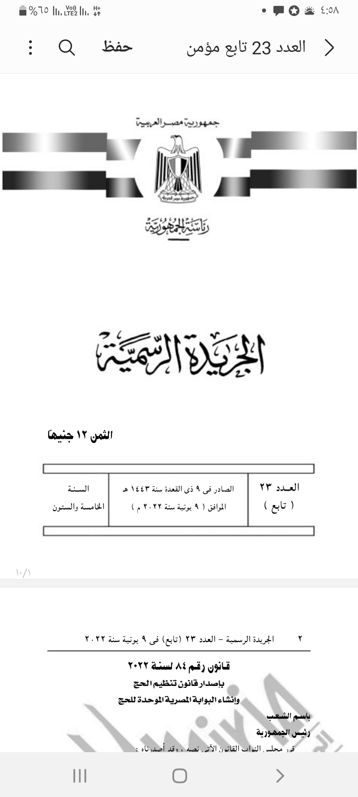صدق الرئيس عبد الفتاح السيسي، علي القانون رقم ٨٤ لسنة ٢٠٢٢ بإصدار قانون تنظيم الحج وإنشاء البوابة المصرية الموحدة للحج.