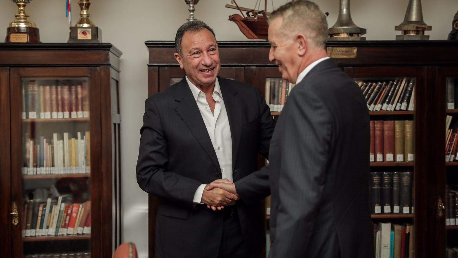 وحرص الخطيب على الحديث مع سامي قمصان القائم بأعمال المدير الفني ومحمد شرف المدرب العام وصافح اللاعبين وطالبهم بتحقيق الفوز.