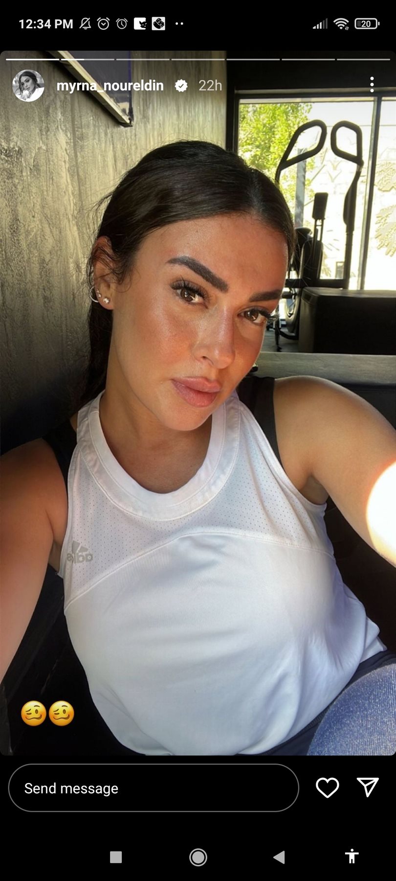 وظهرت ميرنا نور الدين عبر خاصية “الاستوري”، مرتدية كاجوال باللون الأبيض، رافعة خصلات شعرها إلى أعلي، مما نال إعجاب متابعيها.