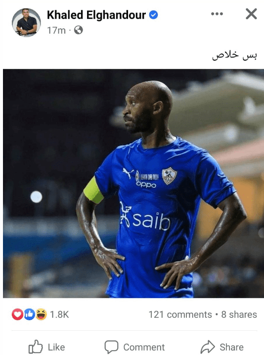 نشر خالد الغندور ، لاعب الزمالك سابقا ، صورة لـ شيكابالا ، من مبارة القمة بين الاهلى والزمالك التى انتهت بالتعادل بهدفين لكل منهما .