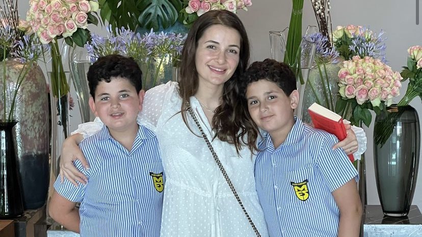 وظهرت شام الذهبي في الصورة بصحبة أشقائها، وعلقت قائلة: "هم عالمي وفرحتي.. نعمة أنا ممتنه لها إلى الأبد! أطفال بدون آلام الولادة شكرا لك ماما".