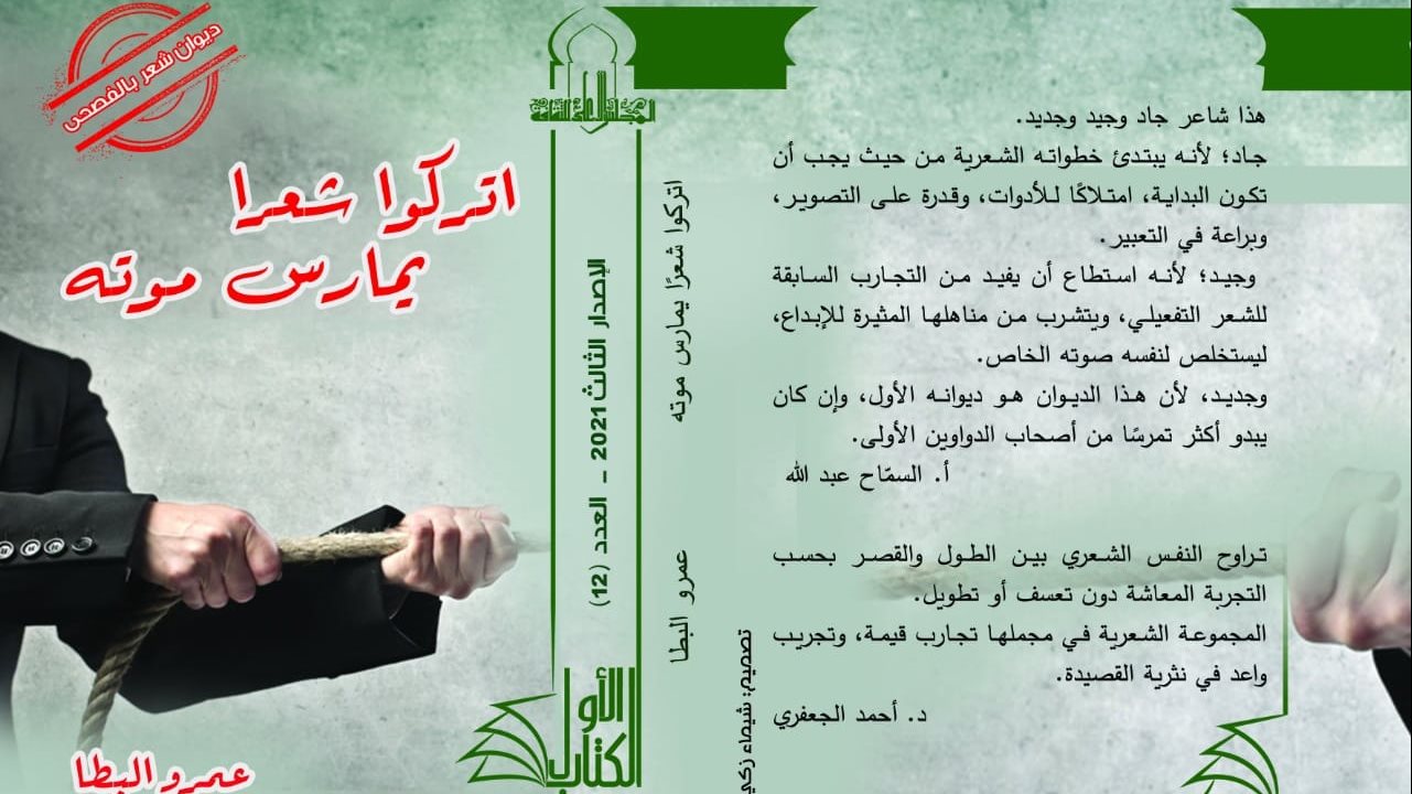 صدر حديثًا عن المجلس الأعلى للثقافة، بأمانة الدكتور هشام عزمى، ضمن سلسلة الكتاب الأول التابعة للإدارة المركزية للشعب واللجان الثقافية، برئاسة الكاتب محمد عبد الحافظ ناصف، ديوان شعري بالفصحى بعنوان "اتركوا شعرا يمارس موته" للشاعر عمرو البطا، تحت رعاية الدكتورة إيناس عبد الدايم، وزير الثقافة.