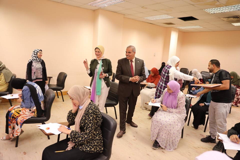ووجه رئيس الجامعة بتوفير المناخ المناسب للطالبات لمساعدتهن خلال فترة الامتحانات ، كان في استقبال رئيس الجامعة والأمين العام الدكتورة شيماء عرفة، عميدة المعهد.